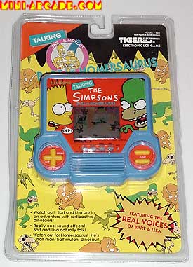 Comments: Quite a strange idea for a game, but that is what makes it so amazing. The museum was built upon a nuclear waste site, which apparently turns homer into a mutant dinosaur. Bart harrasses poor Homer, while Lisa chases away Bart. There is a cheap little voice chip in this game, which has authentic recordings of Bart and Lisa. Great little gaming gem! |